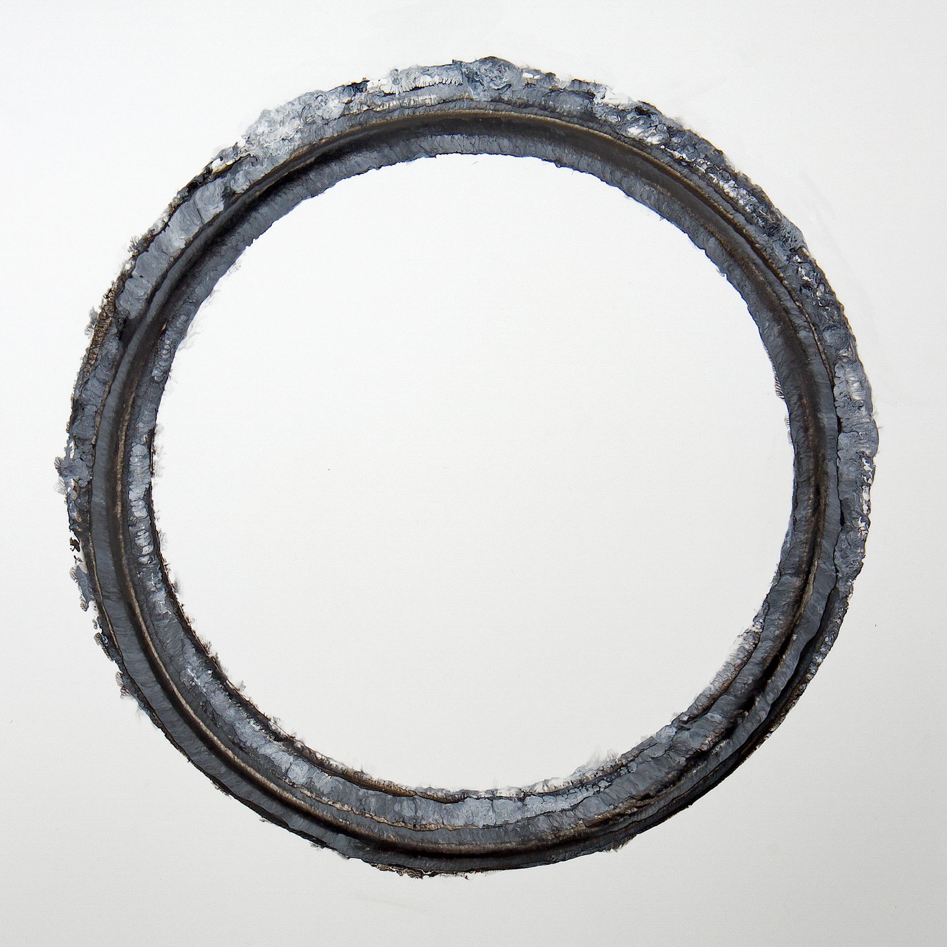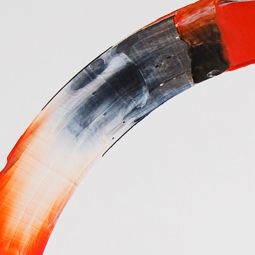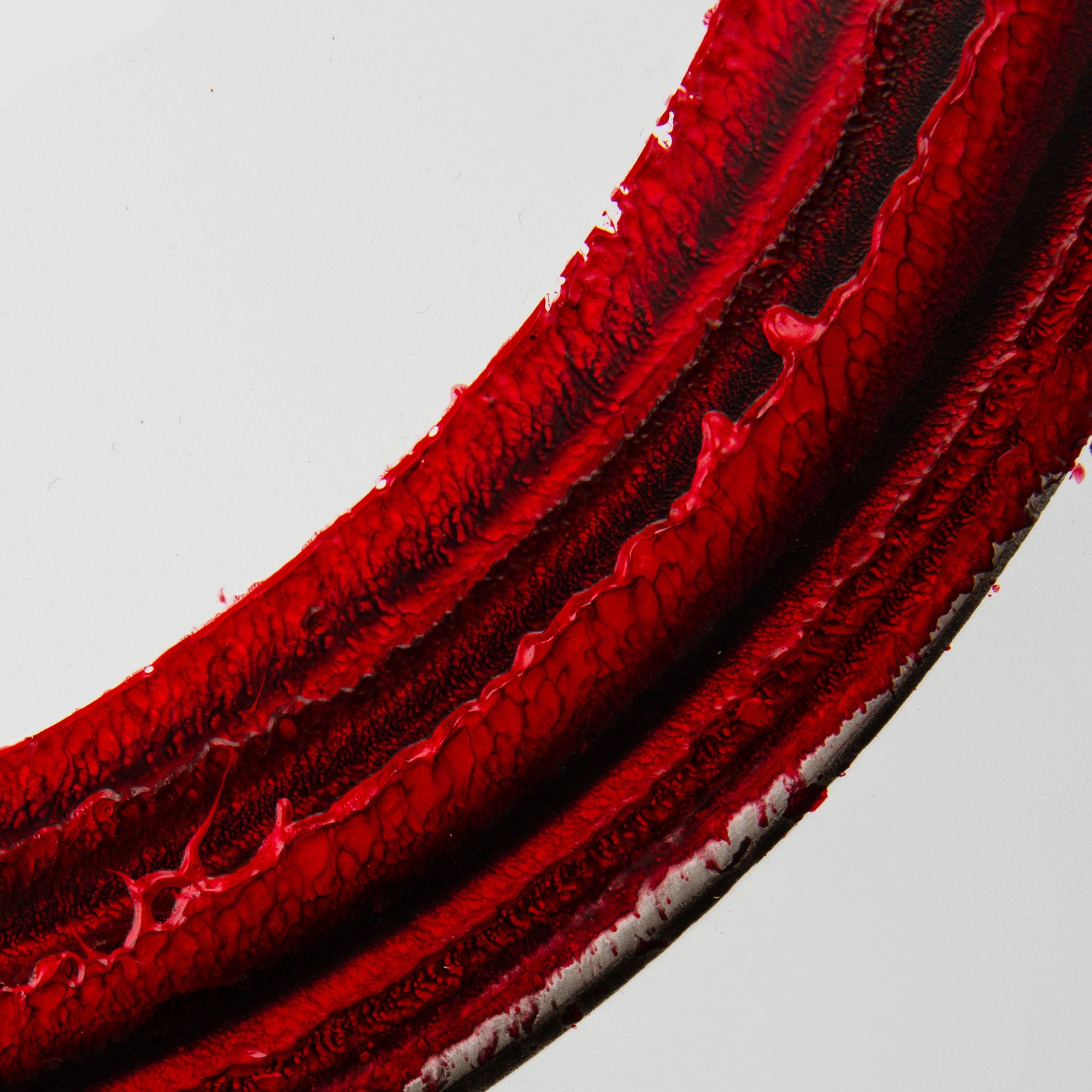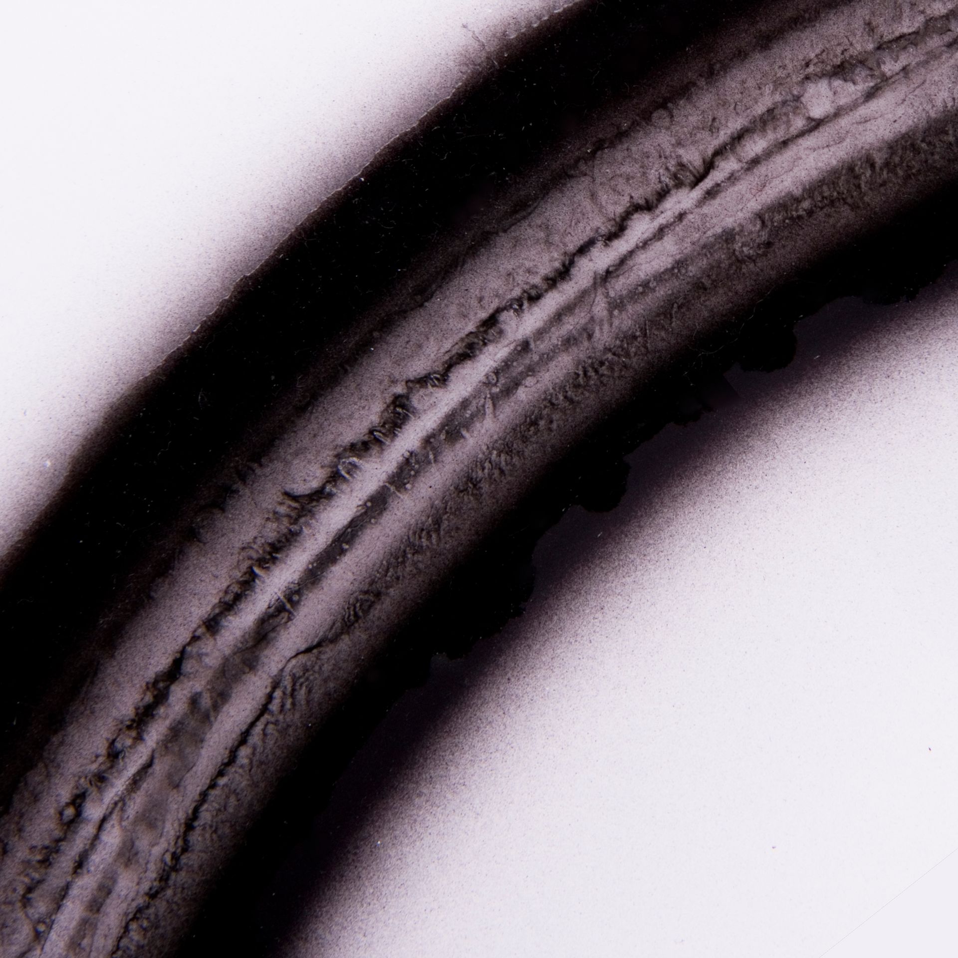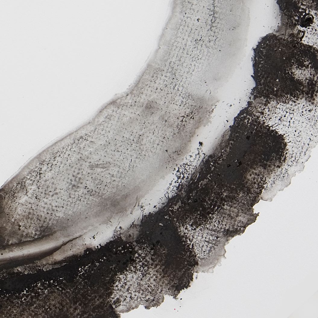 I removed the color for these images which allowed me to focus on creating new textures. Combining techniques and using a variety of paints I was able to build up layers with different surface interests. I also manipulated a variety of mediums to create interest with different matt and shine finishes. The movement of the page created some nice layered lines with subtle changes within the flow of the paint.
